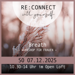 Modul 4: Breath VERSCHOBEN auf den 22.02.2026 – 10:30 – 14:00 Uhr In diesem Workshop erwarten dich aktivierende und entspannende Atemübungen, Pranayamas, Mediation, sanfte Yogaflows. Der Atem ist immer mit dabei und verbindet auf magische Weise Bewusstsein mit dem Unterbewusstsein. Dabei geht es darum, den inneren Raum zu weiten, zu beleben und zu entspannen.